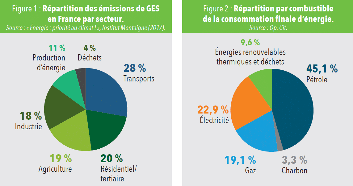 Nous devons en finir avec les idées reçues sur l’énergie. Ces dix dernières années, les efforts ont porté sur le mix électrique, avec le développement rapide des énergies renouvelables électriques. Trop peu a été fait sur les principales sources d’émission de gaz à effet de serre que sont le transport et le chauffage, secteurs qui dépendent massivement de l’importation de combustibles fossiles (figure 1). La politique énergétique et l’action en faveur du climat doivent reposer sur ces constats objectifs.